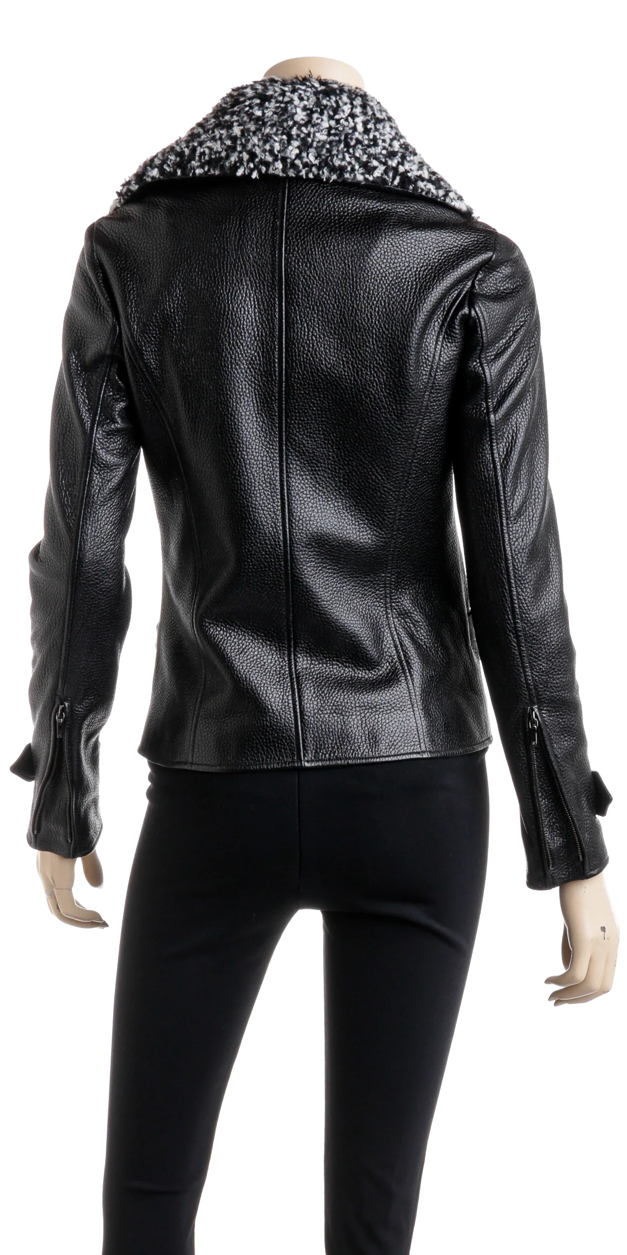 Chanel Black Leather Motorcycle Style Jacket with Boucle Collar