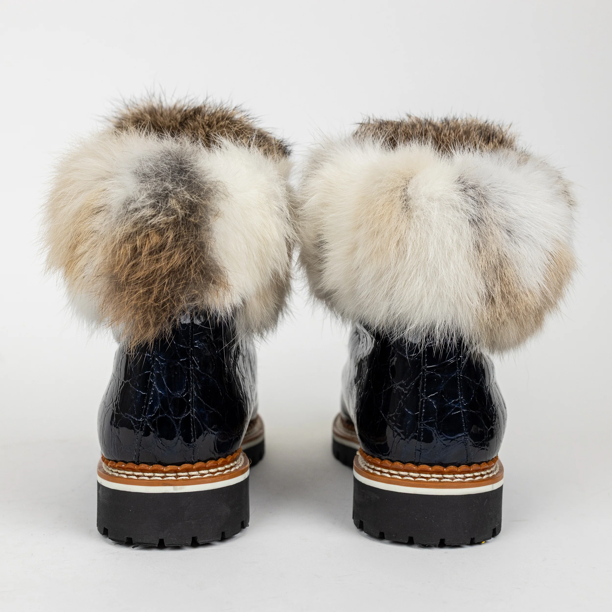 La Thuile Navy Blue Croc Embossed Fur Boots Size 40