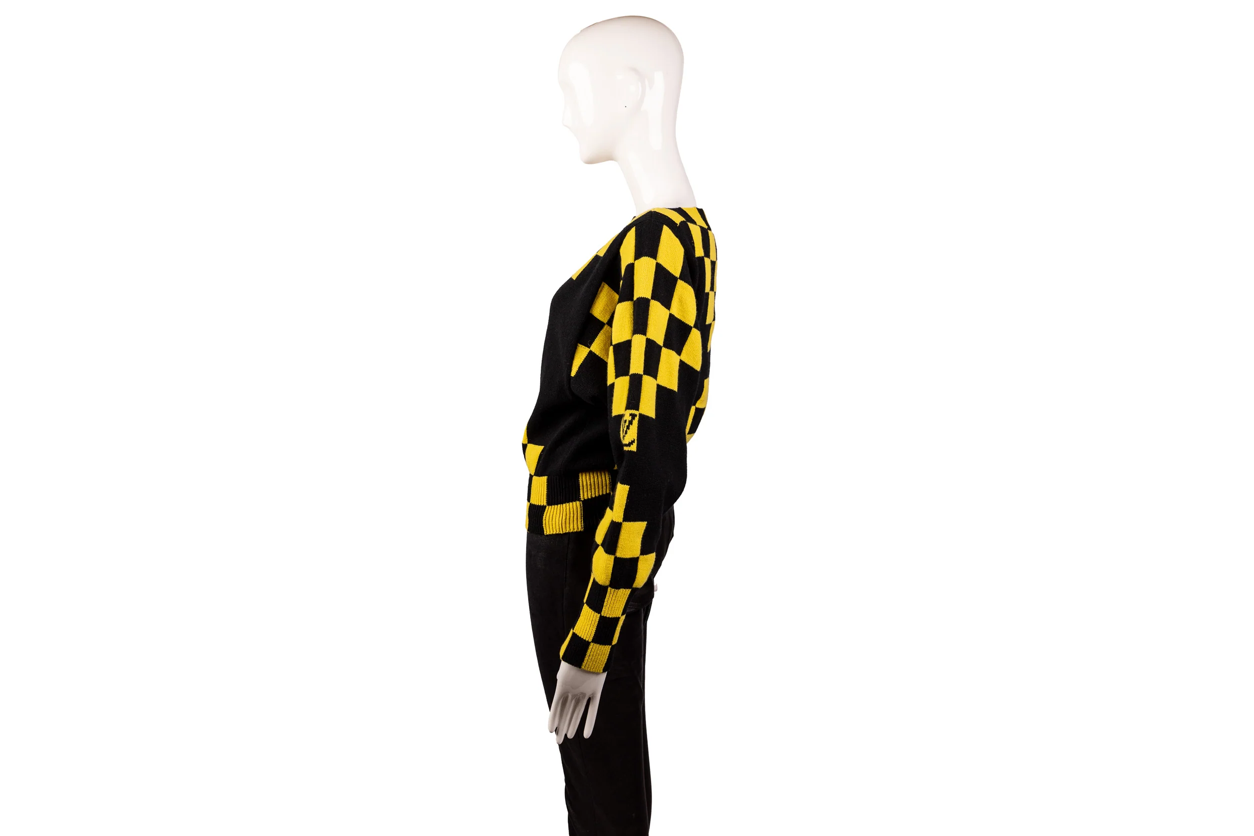Louis Vuitton Black Yellow Checkerboard Knit Sweater Size S