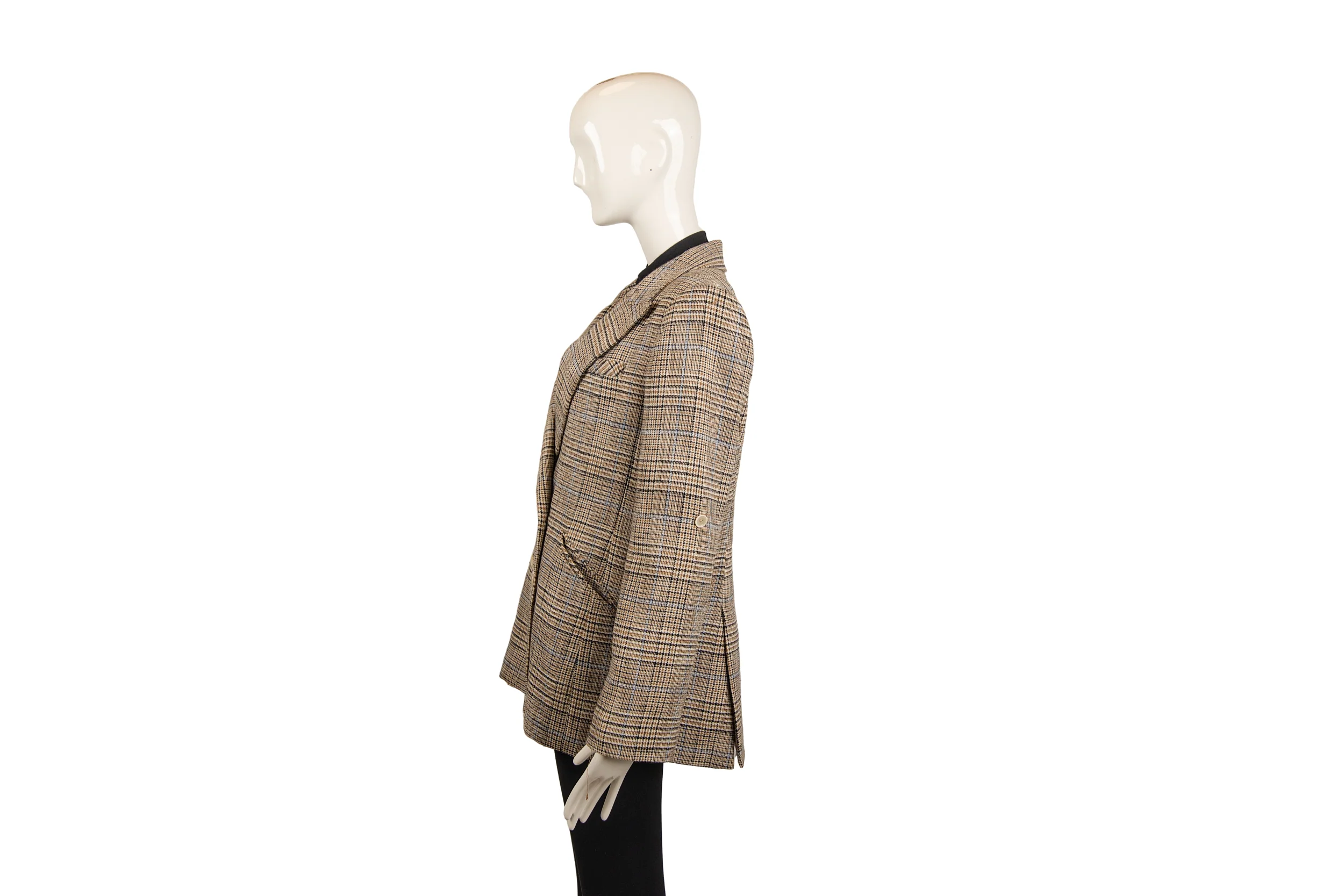 This Veronica Beard top features a structured silhouette with pinstripe detailing and tweed accents, blending classic tailoring with modern feminine design. An elevated wardrobe staple suitable for both workwear and refined casual styling.